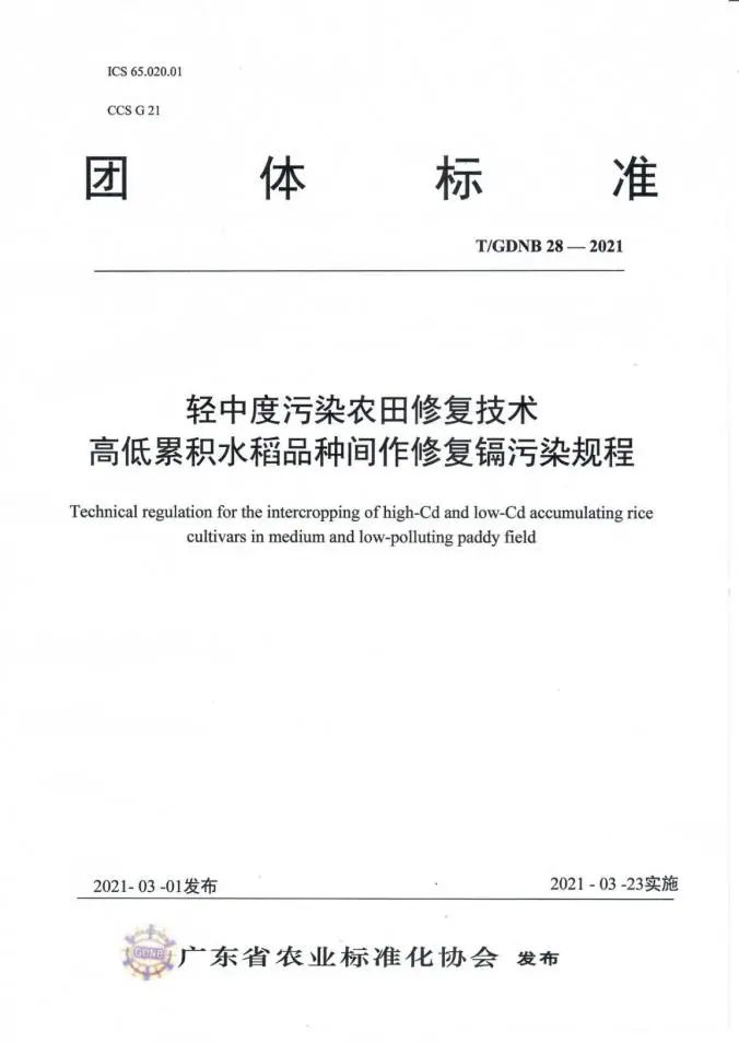 【CONGRATULATION】 喜 報 熱烈祝賀 我司參與制定的標準 頒布實施 我司與華南農(nóng)業(yè)大學資源環(huán)境學院、中國科學院地理科學與資源研究所等單位合作開展高低累積水稻品種間作修復鎘污染,水稻-水雍菜間套種修復鎘、砷污染,東南景天與蠶豆間作冬種修復鎘污染等研究工作,聯(lián)合起草了《輕中度污染農(nóng)田修復技術 高低累積水稻品種間作修復鎘污染規(guī)程》(T/GDNB28-2021)、《輕中度污染農(nóng)田修復技術 水稻-水雍菜間套種修復鎘、砷污染規(guī)程》(T/GDNB29-2021)、《輕中度污染農(nóng)田修復技術 東南景天與蠶豆間作冬種修復鎘污染規(guī)程》(T/GDNB30-2021),通過廣東省農(nóng)業(yè)標準化協(xié)會組織的標準審定并發(fā)布實施(2021年3月23日實施)。 廣東韶科環(huán)??萍加邢薰?nbsp; 20121年4月9日